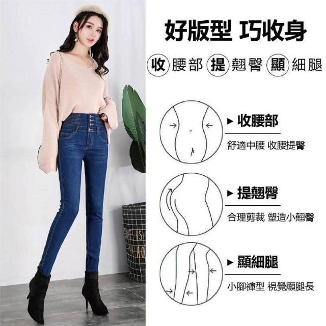 HELENA排扣牛仔褲 高腰收腹牛仔褲 鉛筆褲 韓版顯瘦彈力貼身修身小腳大尺碼窄管褲 排釦長褲 C1183