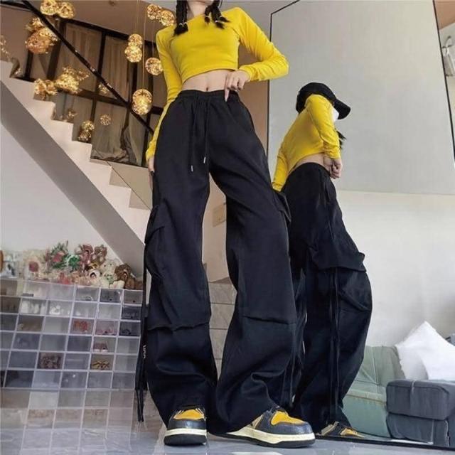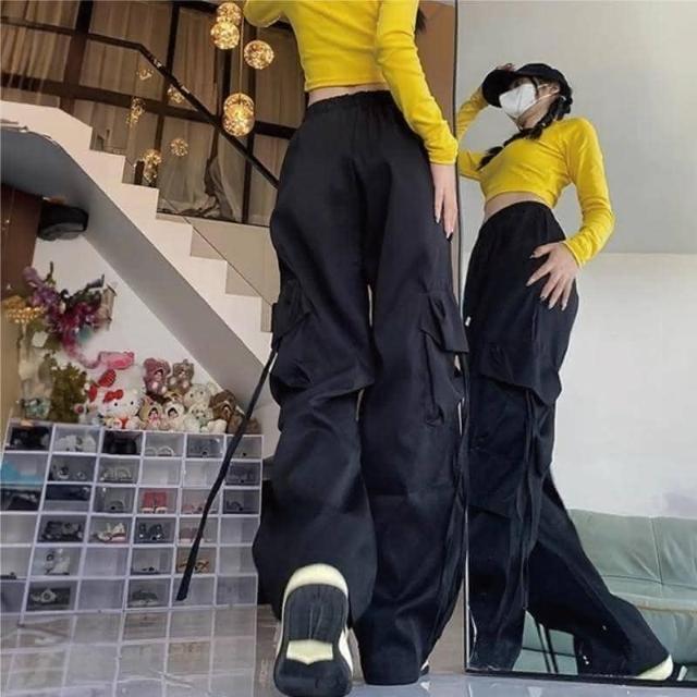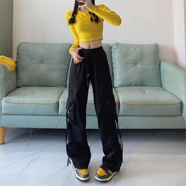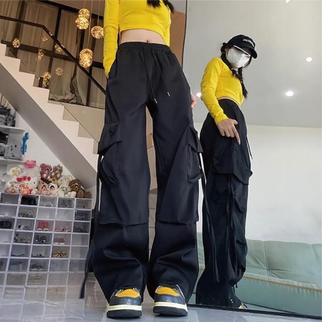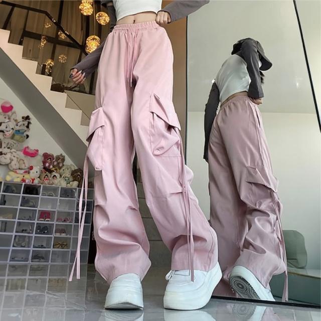 HELENA美式工裝褲 高腰寬鬆直筒褲 闊腿褲 多巴胺穿搭 辣妹裝 運動休閒褲 長褲 褲子女 C1203