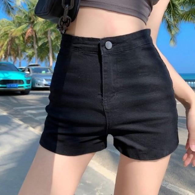 HELENA黑色牛仔短褲 高腰顯瘦辣妹風百搭黑色短褲 三分褲 休閒褲 褲子女 C1200(高腰褲 休閒褲 熱褲 短褲 牛仔褲 褲子女 C1200)