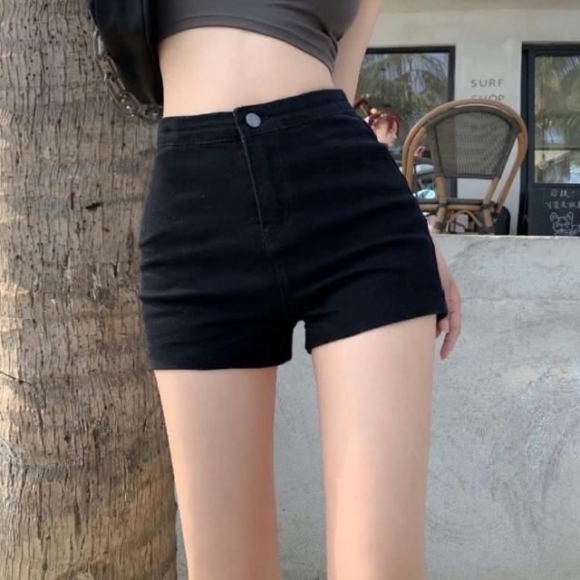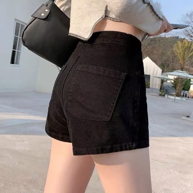 HELENA黑色牛仔短褲 高腰顯瘦辣妹風百搭黑色短褲 三分褲 休閒褲 褲子女 C1200(高腰褲 休閒褲 熱褲 短褲 牛仔褲 褲子女 C1200)