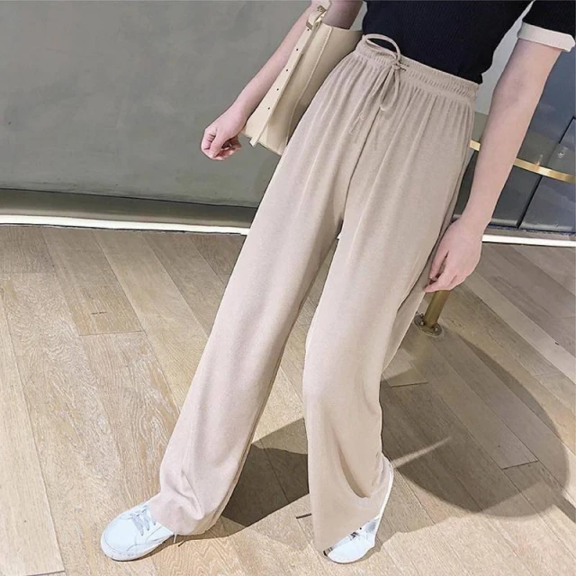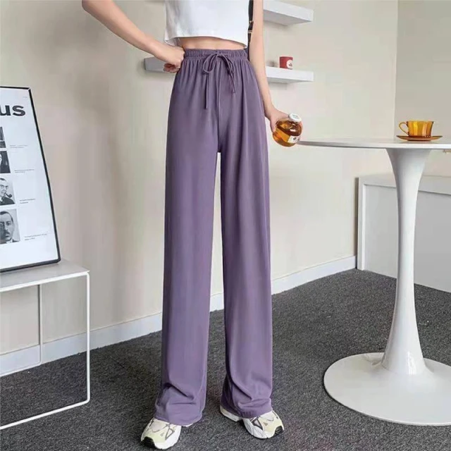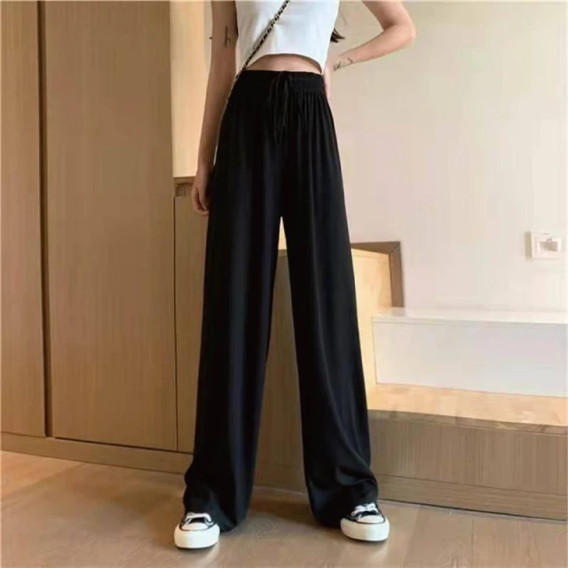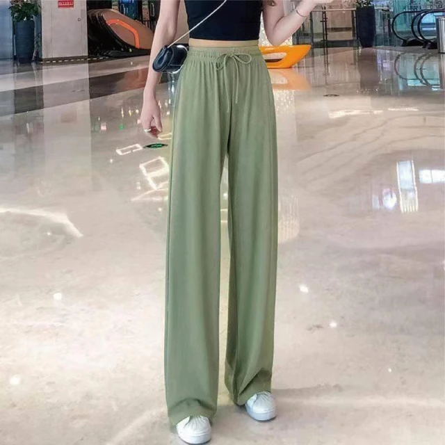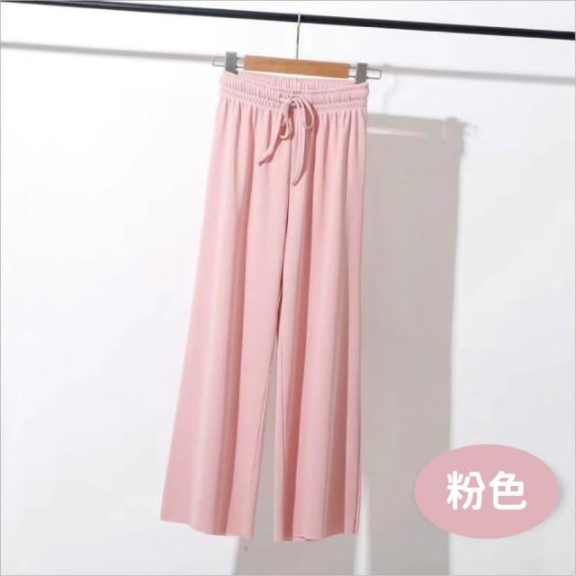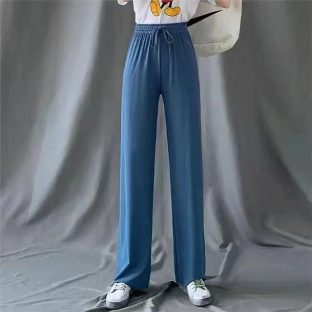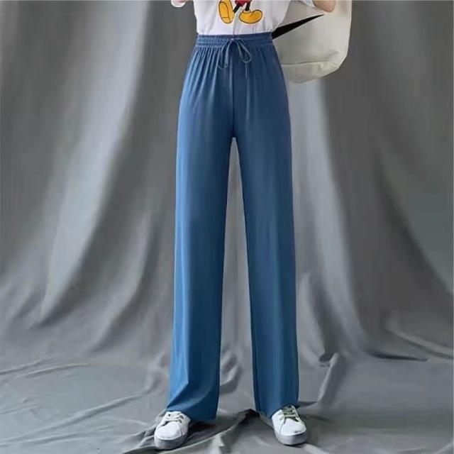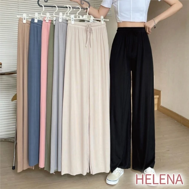 HELENA垂感冰絲薄款九分闊腿褲 直筒褲 寬褲 長褲 高腰顯瘦涼感透氣休閒垂墜感涼爽素色 褲子 C1215