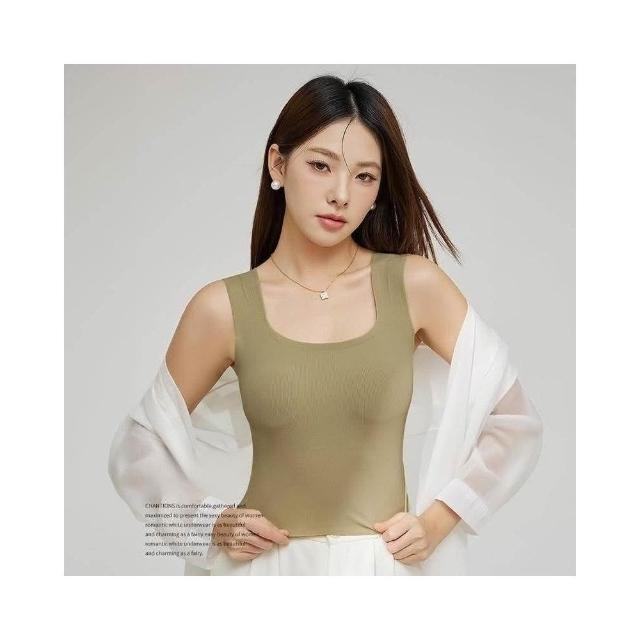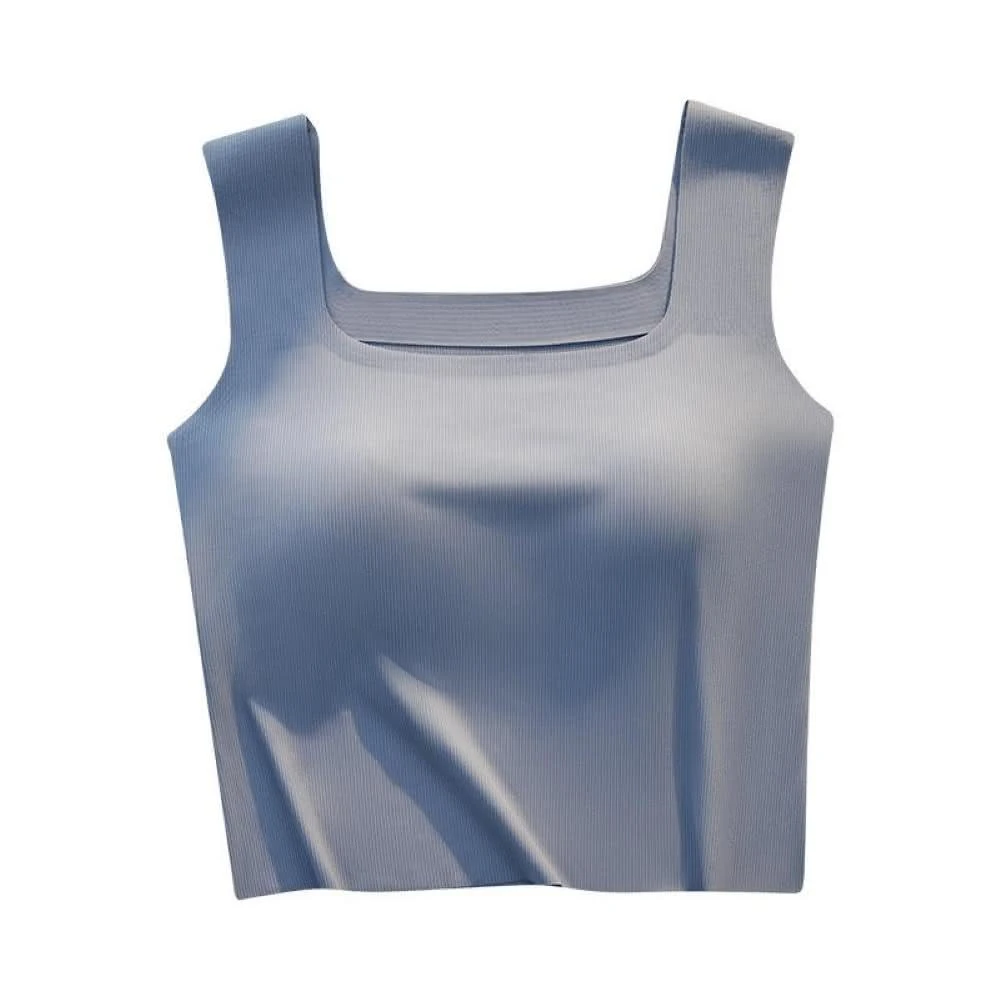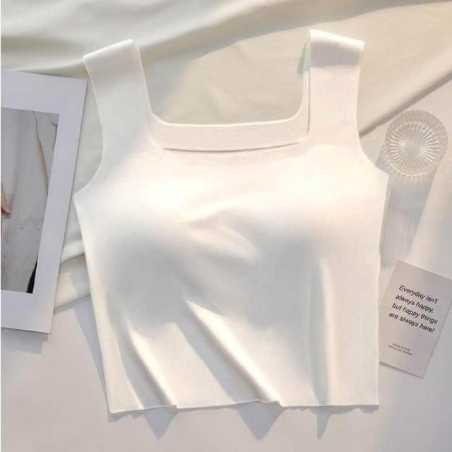 HELENA冰絲背心 涼感小可愛 方領寬肩帶背心 帶胸墊免穿內衣 短版美背韓版合身背心 女裝 A1164