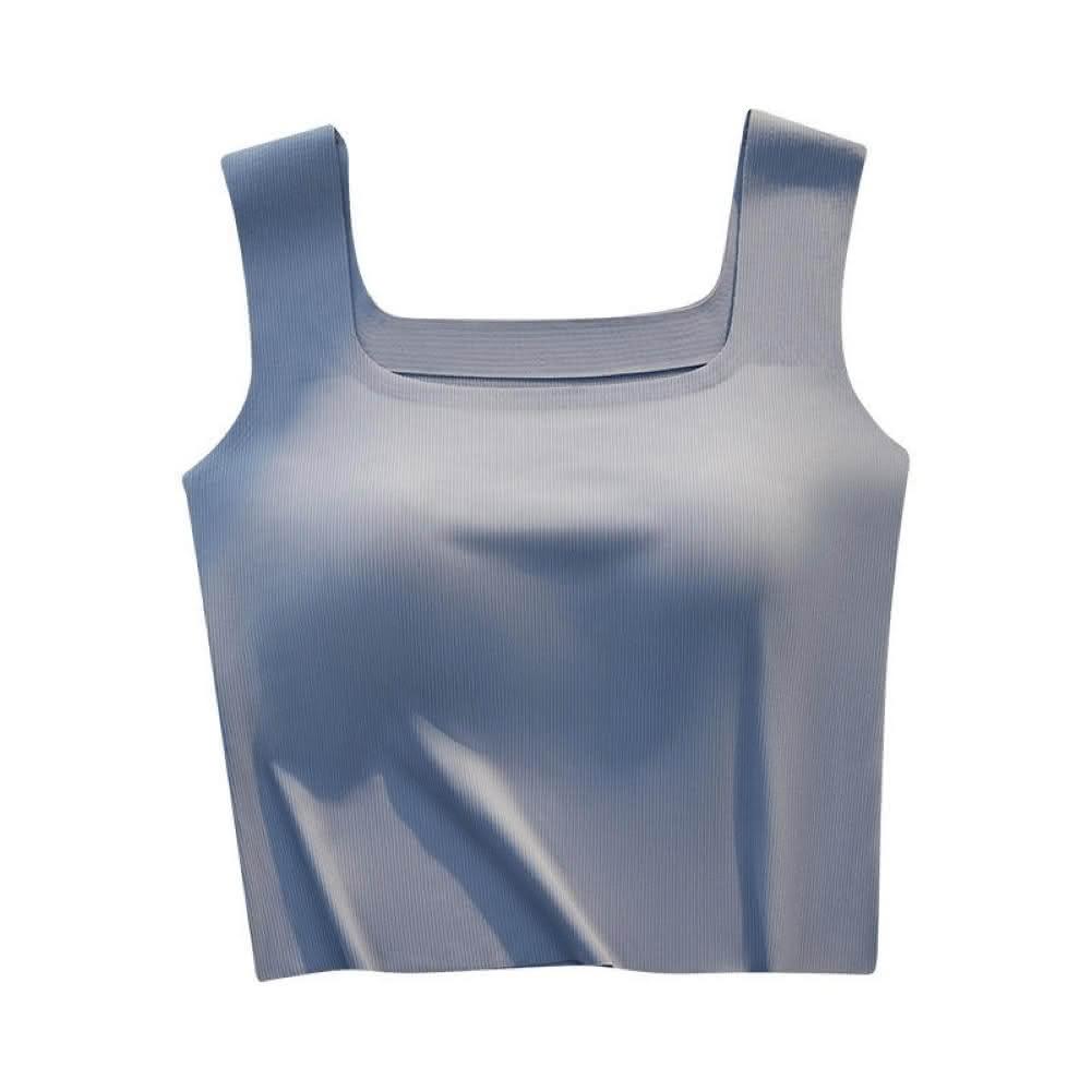 HELENA冰絲背心 涼感小可愛 方領寬肩帶背心 帶胸墊免穿內衣 短版美背韓版合身背心 女裝 A1164