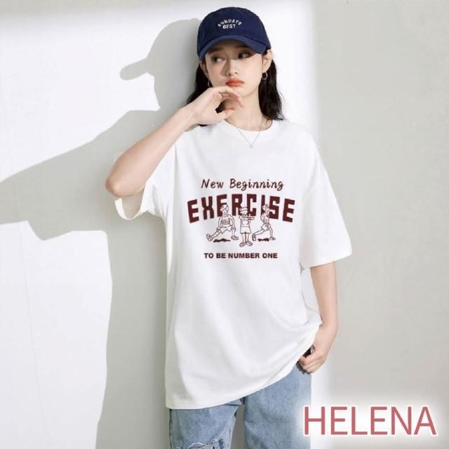 HELENA純棉寬鬆上衣(短袖上衣 T恤 白色 圓領 休閒百搭 韓版上衣 A1122)