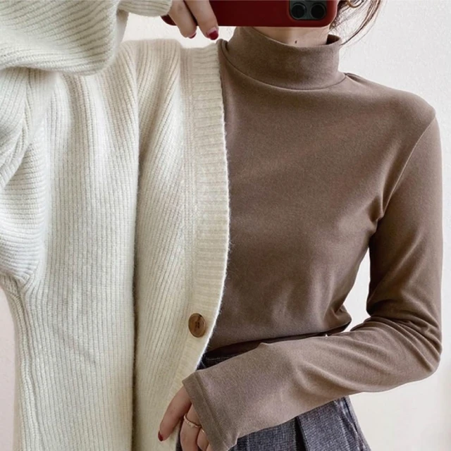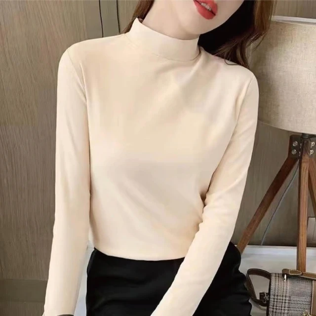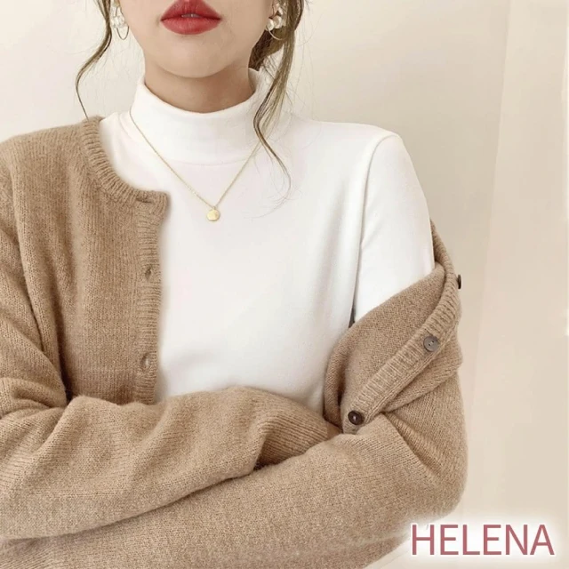 HELENA德絨半高領上衣 內搭上衣 發熱衣 長袖 微高領素色緊身保暖加絨打底衫 秋冬上衣 A2202