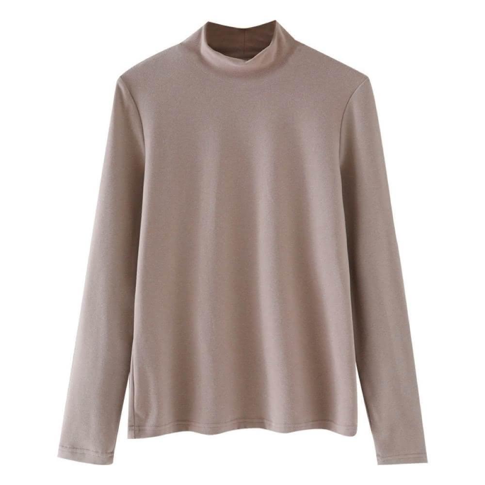 HELENA德絨半高領上衣 內搭上衣 發熱衣 長袖 微高領素色緊身保暖加絨打底衫 秋冬上衣 A2202