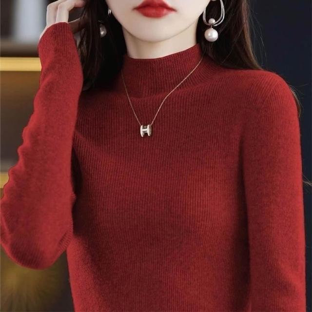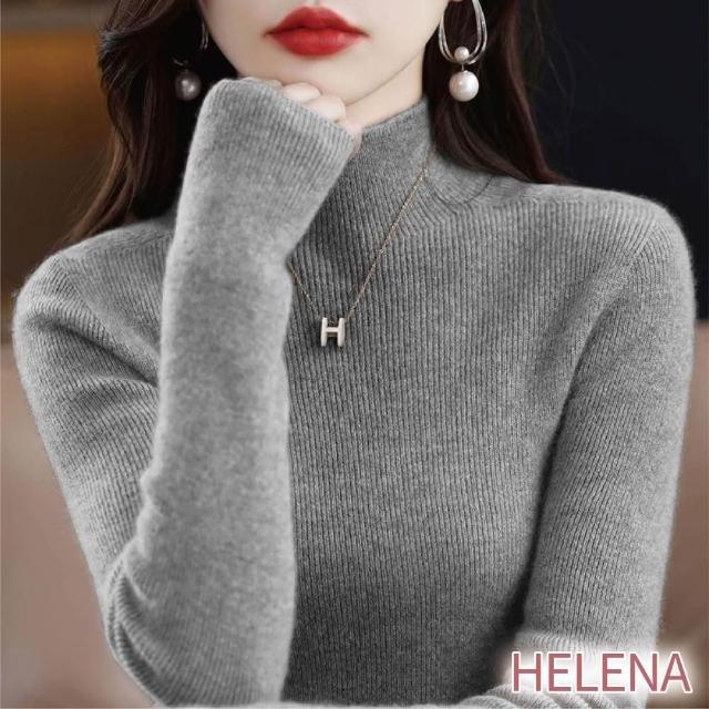 HELENA半高領針織上衣 針織衫 內搭毛衣 微高領長袖上衣 寬鬆顯瘦休閒百搭彈性打底衫 上衣女 秋冬 A2159