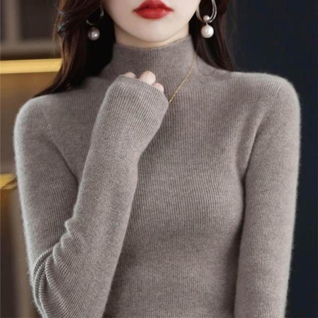 HELENA半高領針織上衣 針織衫 內搭毛衣 微高領長袖上衣 寬鬆顯瘦休閒百搭彈性打底衫 上衣女 秋冬 A2159