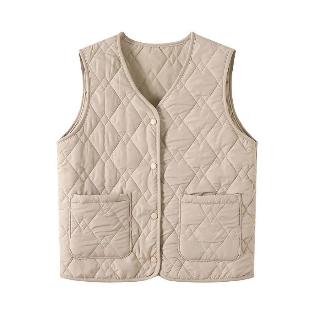 HELENA菱格羽絨棉馬甲 保暖背心 無袖上衣 V領有口袋休閒外搭背心 棉服 背心女 女裝 秋冬 A2218