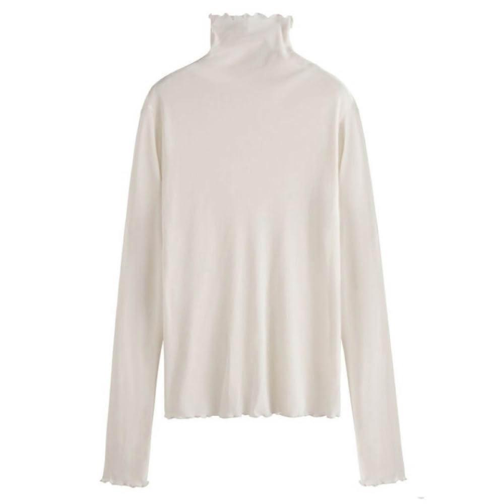 HELENA木耳邊高領透膚網紗上衣 長袖T恤 內搭衣 素色韓版彈力舒適顯瘦打底衫 素T 上衣女 秋冬 A2232