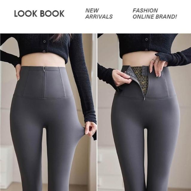 HELENA拉鍊鯊魚褲 加絨提臀芭比褲 瑜珈褲 彈力內搭褲 健身高腰收腹打底褲 秋冬季 褲子女 C233