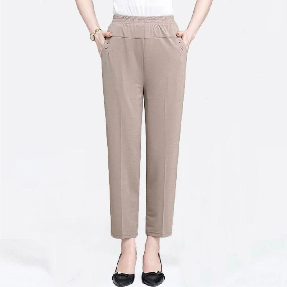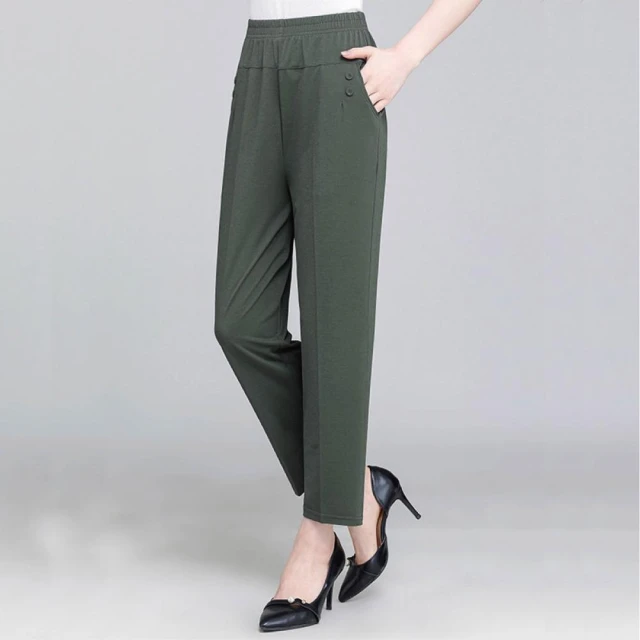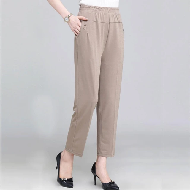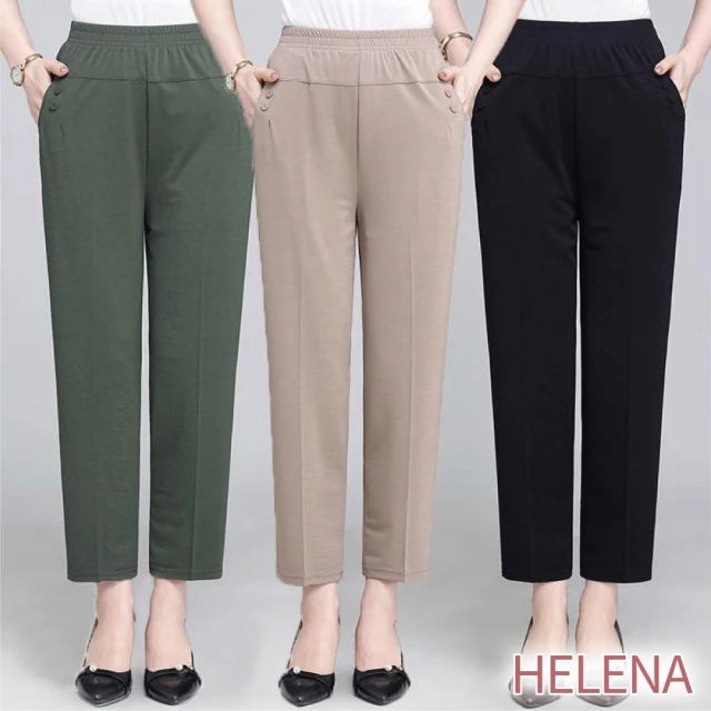 HELENA冰絲薄款直筒褲 休閒褲 九分褲 涼感褲 長褲 媽媽褲 高腰彈力鬆緊腰外穿打底褲 女裝 褲子女 C1233