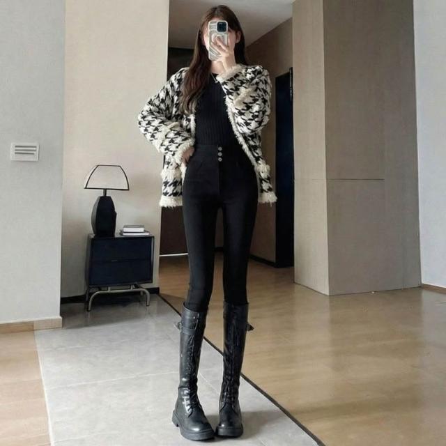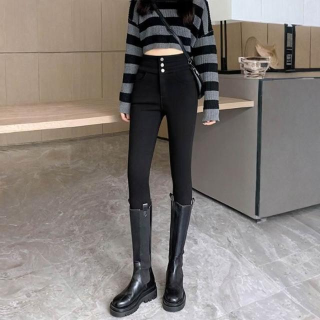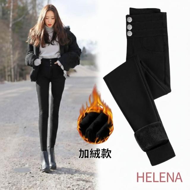 HELENA大尺碼高腰加絨打底褲 提臀內搭褲 顯瘦鉛筆褲 秋褲 長褲 保暖韓版秋冬百搭彈力修身緊身瘦腿貼身【C216】