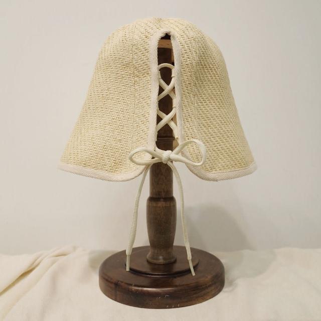 綁繩百合鬱金香帽米色(造型帽、花朵、可愛遮陽)