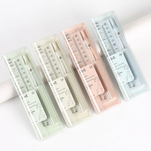 圓規 三合一多功能圓規 自動鉛筆直尺 馬卡龍色系 學生文具 開學必備 作圖工具