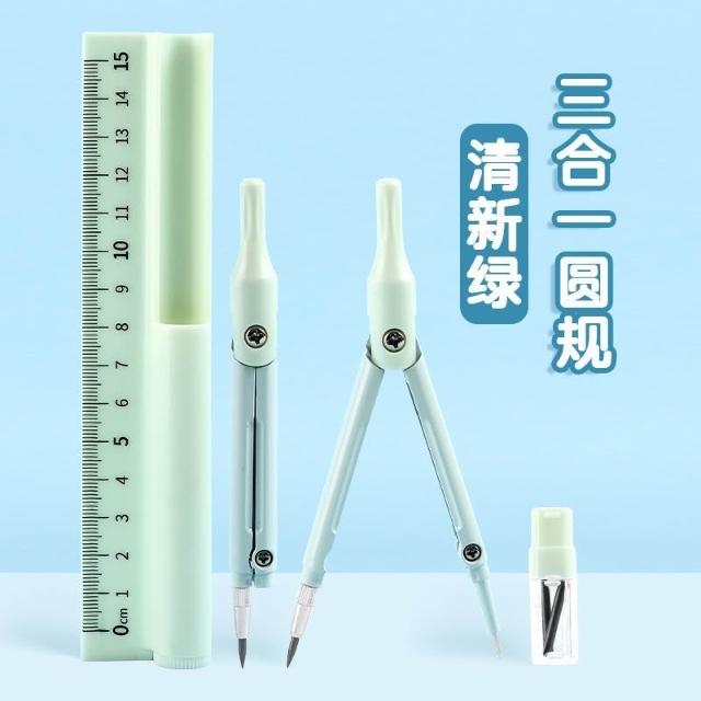 圓規 三合一多功能圓規 自動鉛筆直尺 馬卡龍色系 學生文具 開學必備 作圖工具
