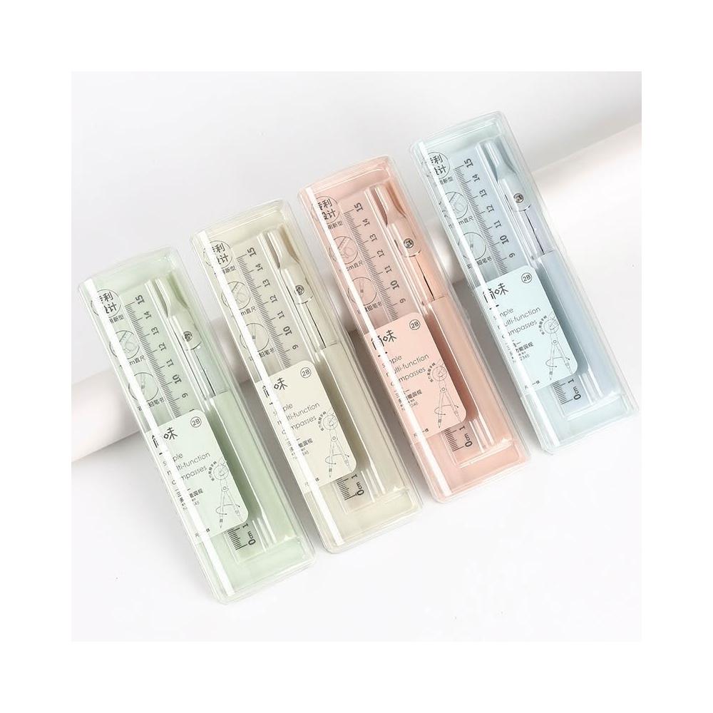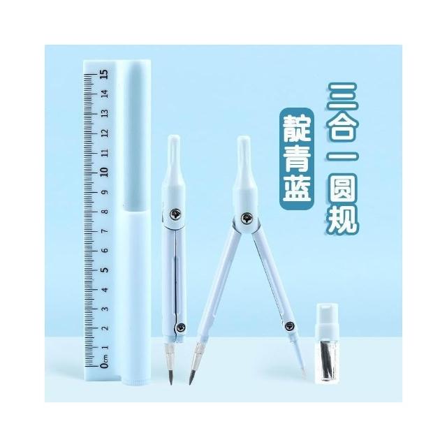 圓規 三合一多功能圓規 自動鉛筆直尺 馬卡龍色系 學生文具 開學必備 作圖工具