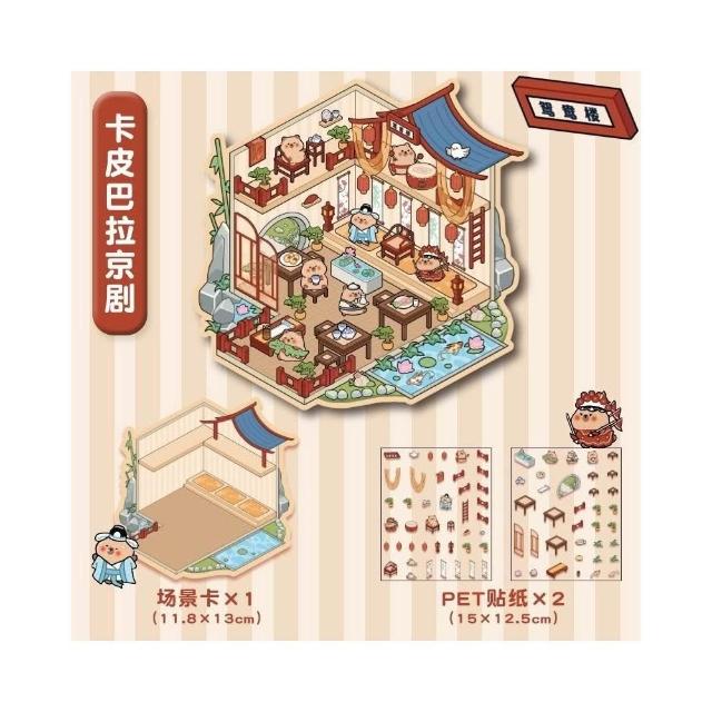 PET可撕貼造景貼紙套裝|覆膜底板反覆玩|漢堡店/便利店場景|附立體效果卡+創意教學指南|
