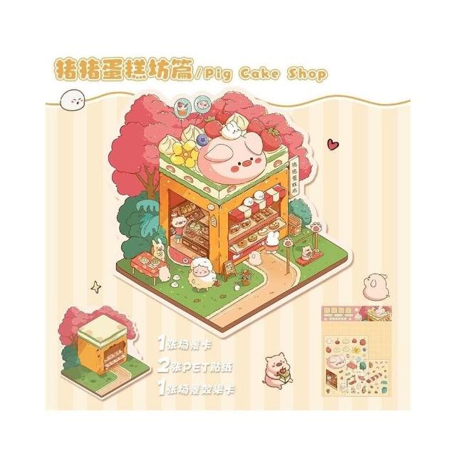 PET可撕貼造景貼紙套裝|覆膜底板反覆玩|漢堡店/便利店場景|附立體效果卡+創意教學指南|
