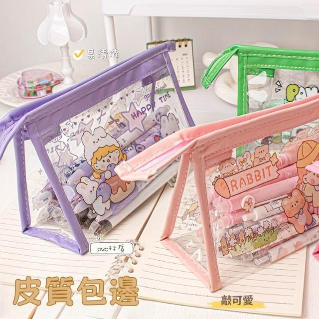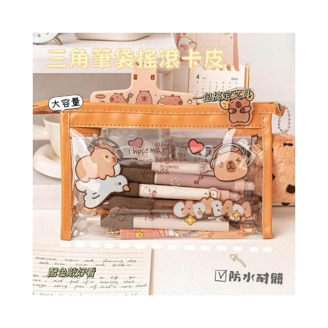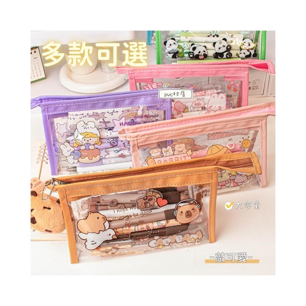 三角透明筆袋 PVC防水耐磨 大容量筆袋 可愛卡通收納袋 文具袋