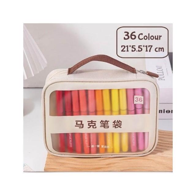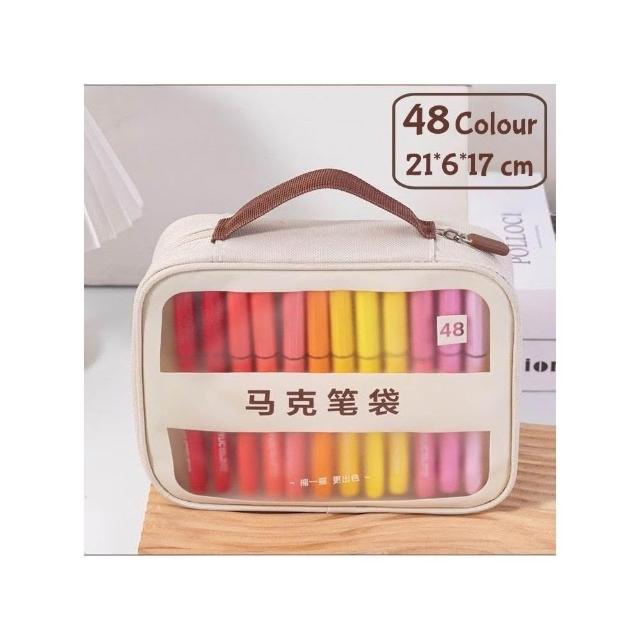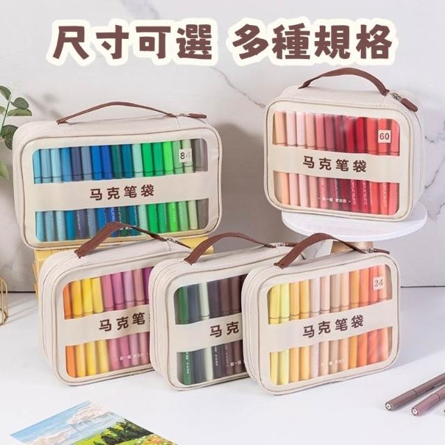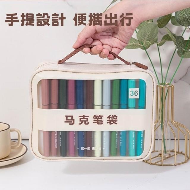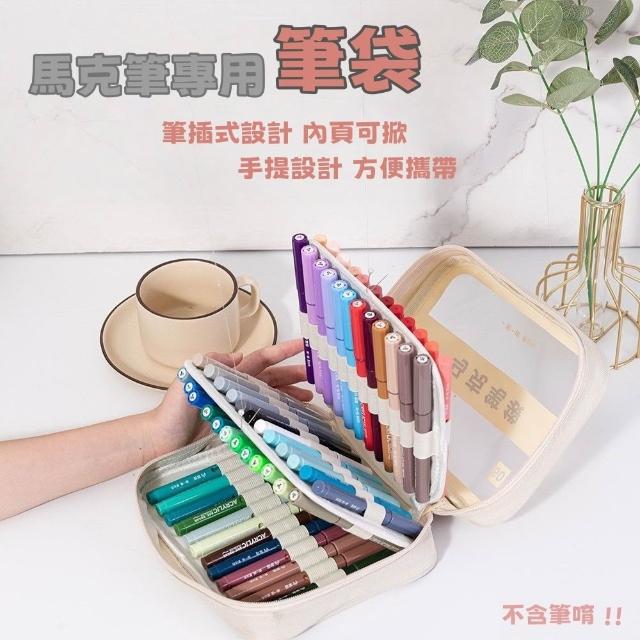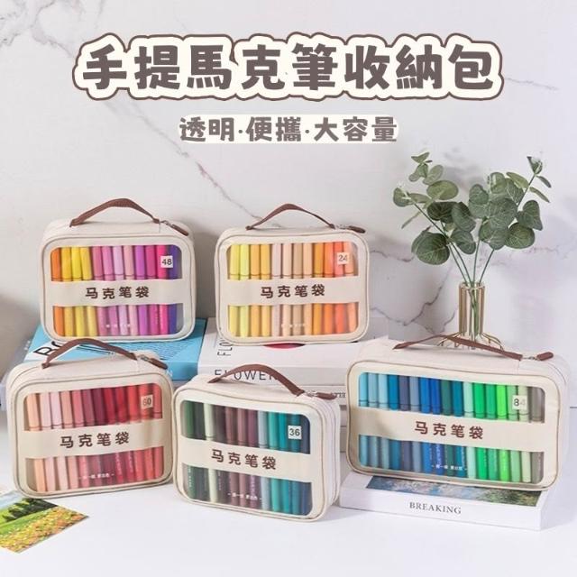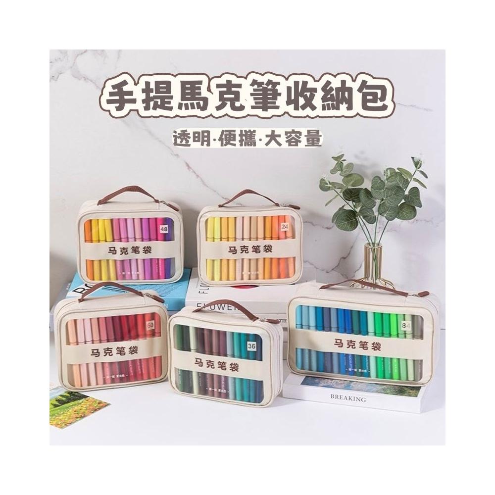 手提馬克筆收納包 大容量 筆插式設計 透明筆袋 美術用品 繪畫工具 麥克筆