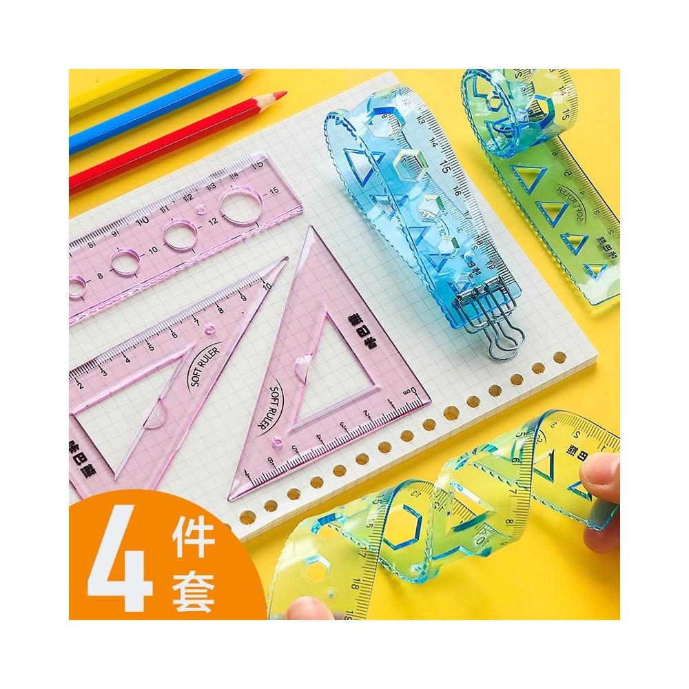 軟尺 直尺套組 三角板 三角尺 直尺 角度尺 量角器 開學用品 直尺套尺四件套 三角板 學生尺子 媽咪你好小舖