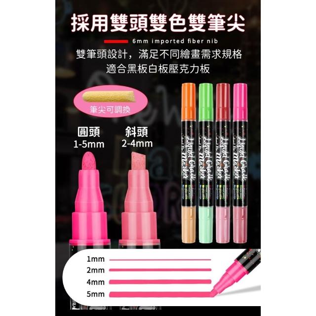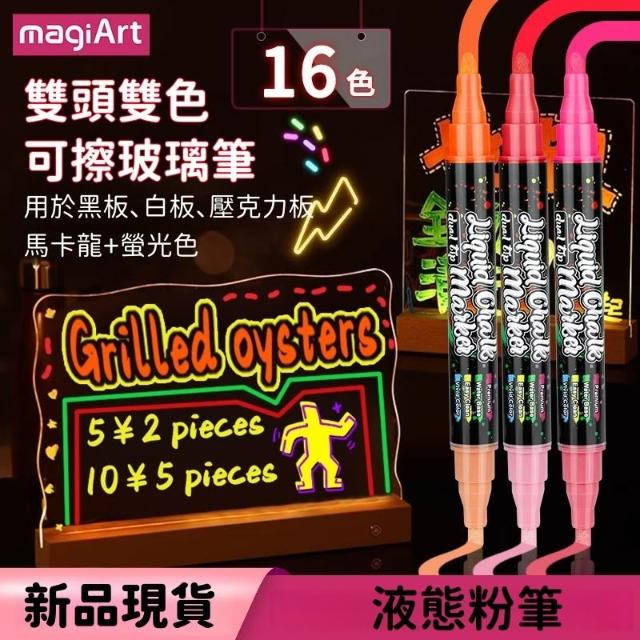 magiArt 雙頭雙色液態粉筆 8支16色|可擦拭玻璃筆 螢光色+馬卡龍色|黑板白板壓克力板專用 媽咪你好小舖