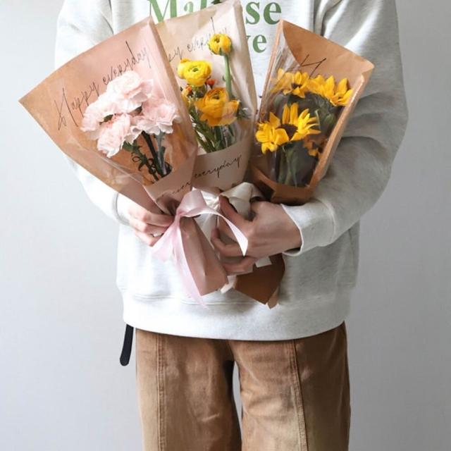 牛皮質感花袋 花束包裝 三角花束包裝 花束包裝袋 簡約風