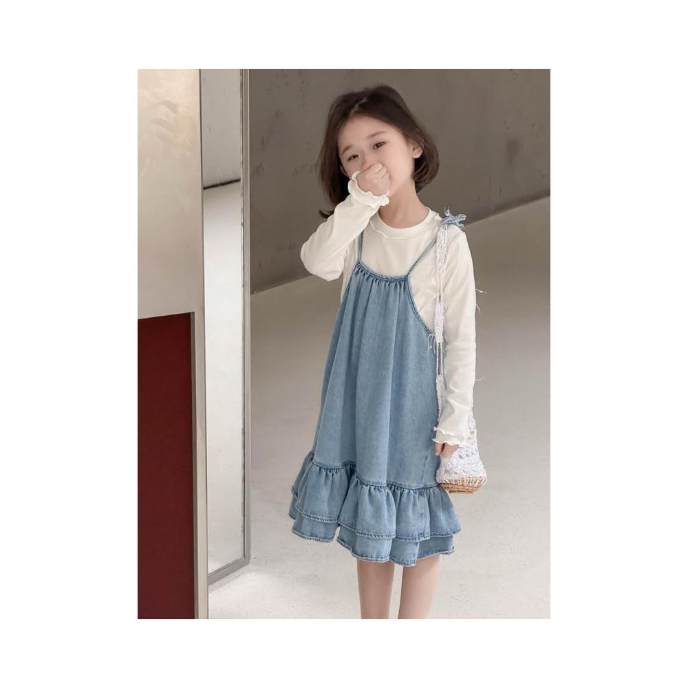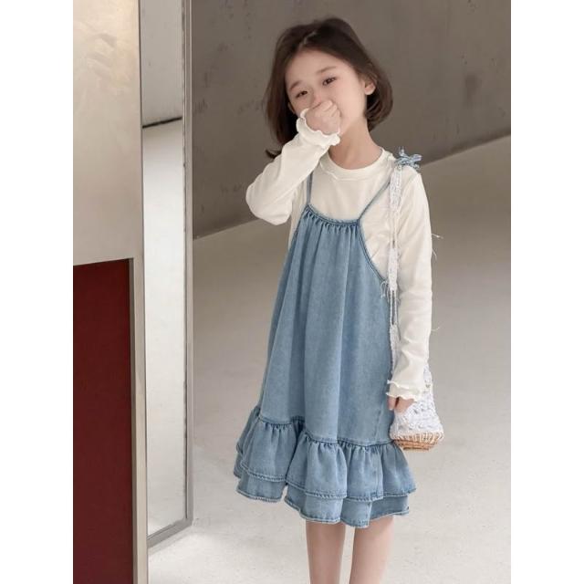 台灣現貨春夏新款 90-130 中小童女童牛仔吊帶裙