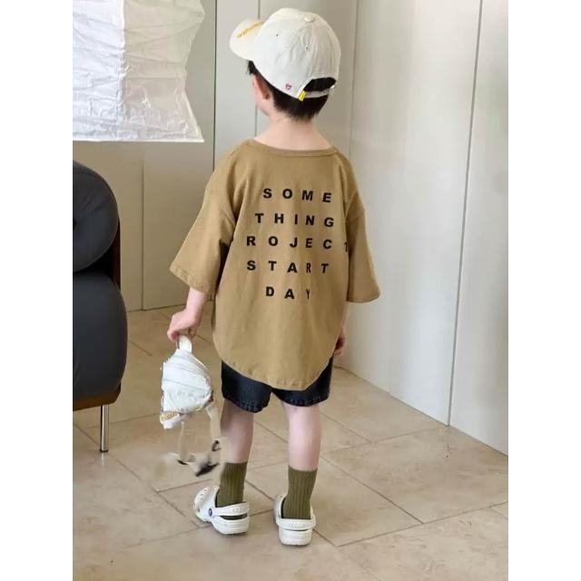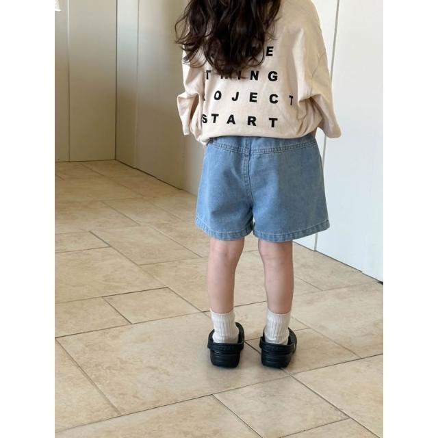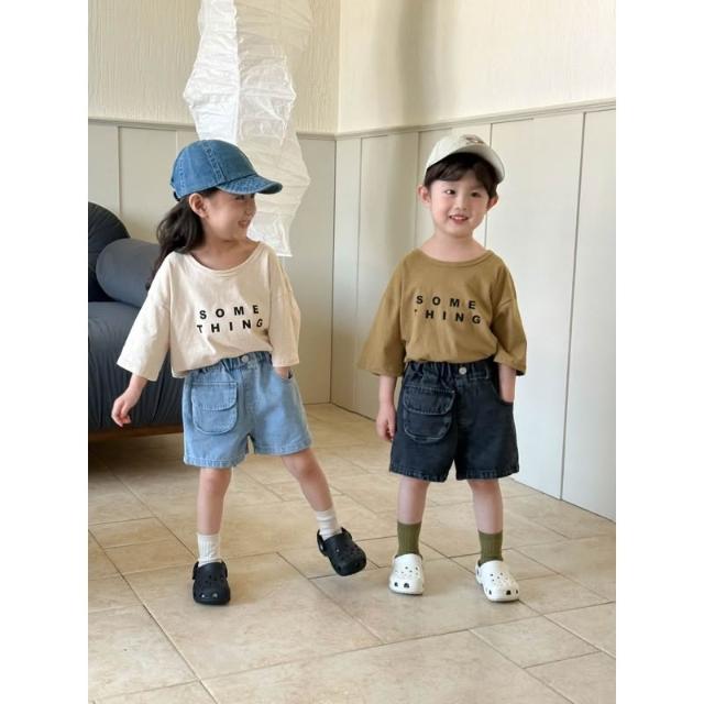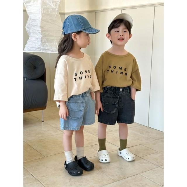 台灣現貨春夏新款 日系童裝90-130中小童 質感小口袋牛仔短褲 簡約字母T恤