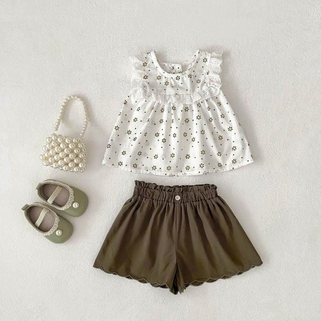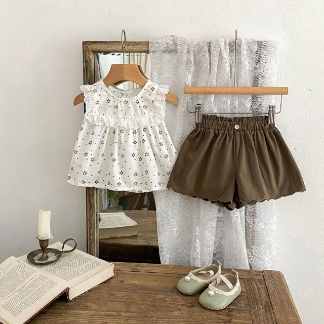 台灣現貨春夏新款90-110嬰幼兒套裝女童套裝花邊背心套裝