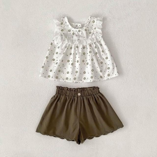 台灣現貨春夏新款90-110嬰幼兒套裝女童套裝花邊背心套裝