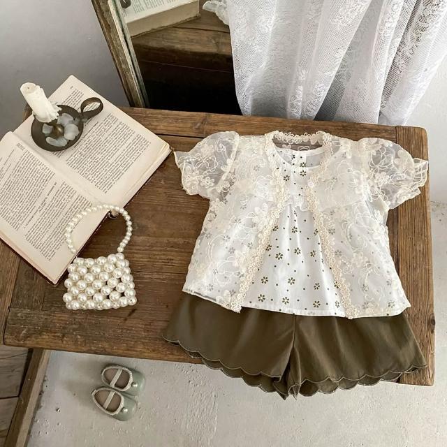 台灣現貨春夏新款90-110嬰幼兒套裝女童套裝花邊背心套裝