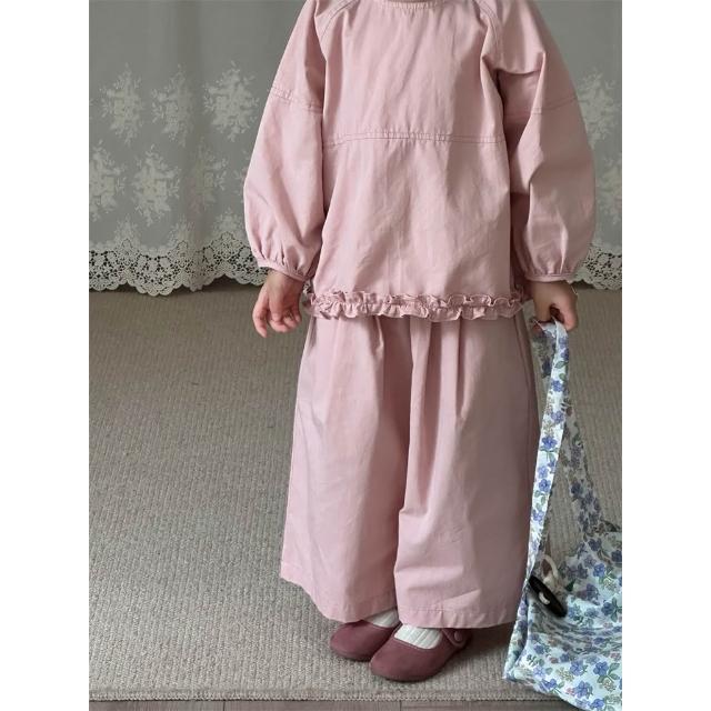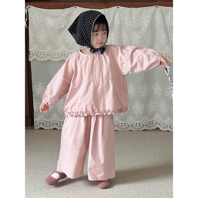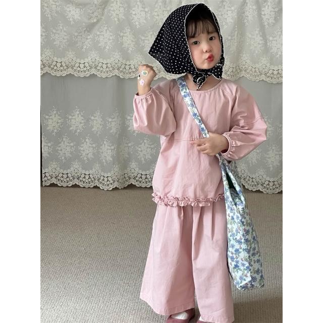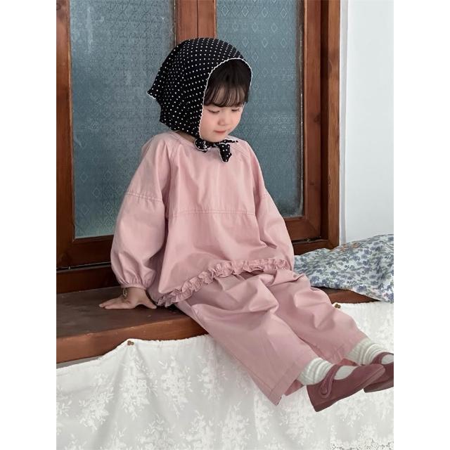 台灣現貨秋冬新款90-130女童粉色木耳邊套裝
