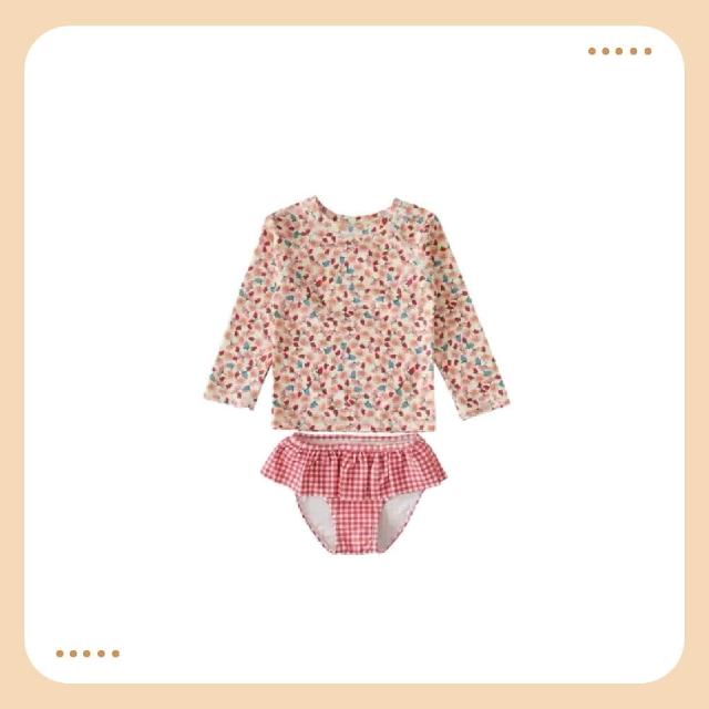 四口甜台灣現貨春夏新款80-130女童長袖UPF50+防曬兩件式泳衣分體泳衣附帽