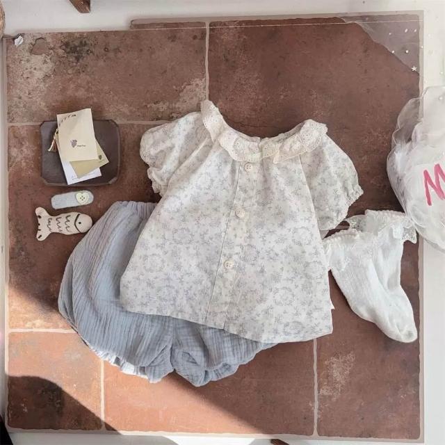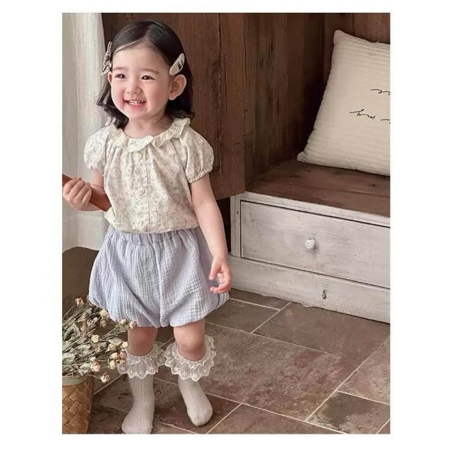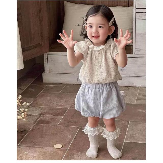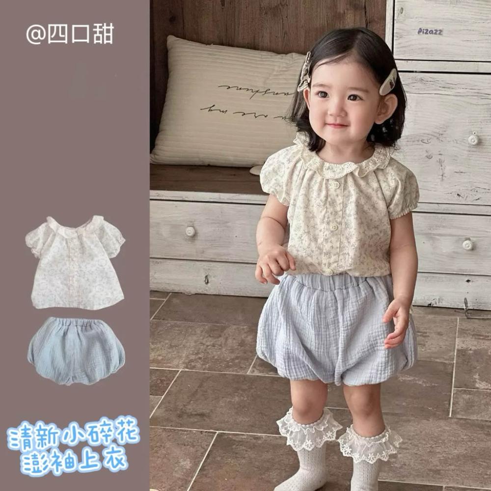 四口甜台灣現貨春夏73-100嬰幼兒女寶純棉碎花短袖上衣