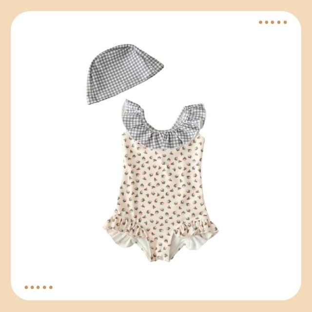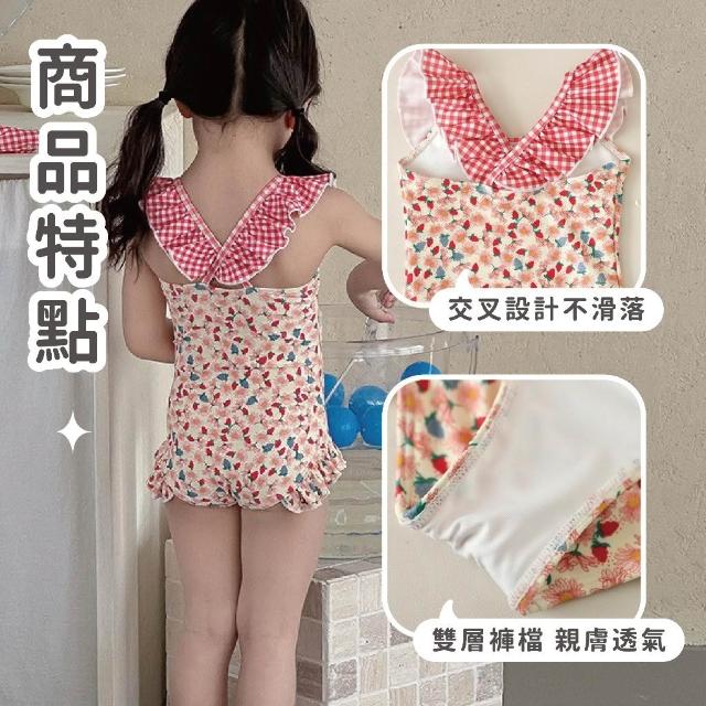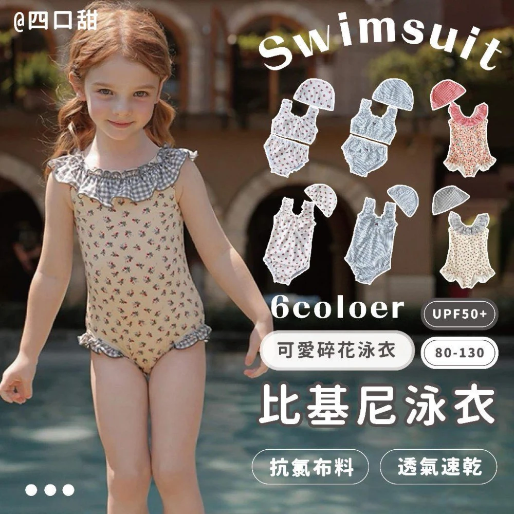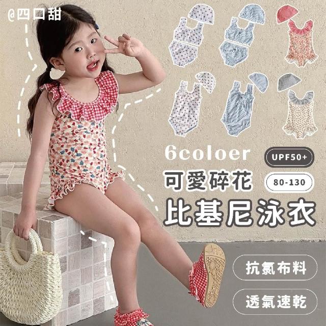 四口甜台灣現貨春夏新款80-130女童可愛碎花連身泳衣寶寶比基尼泳衣