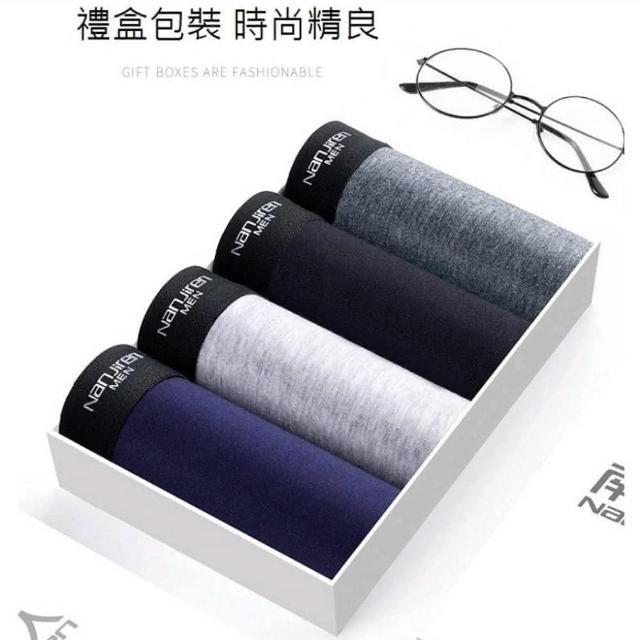 RYANZ南極人 純綿時尚成人合身四角內褲 男生四角褲 男士透氣平口褲(經典純色 四件盒裝)