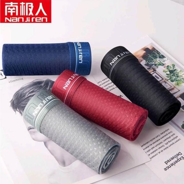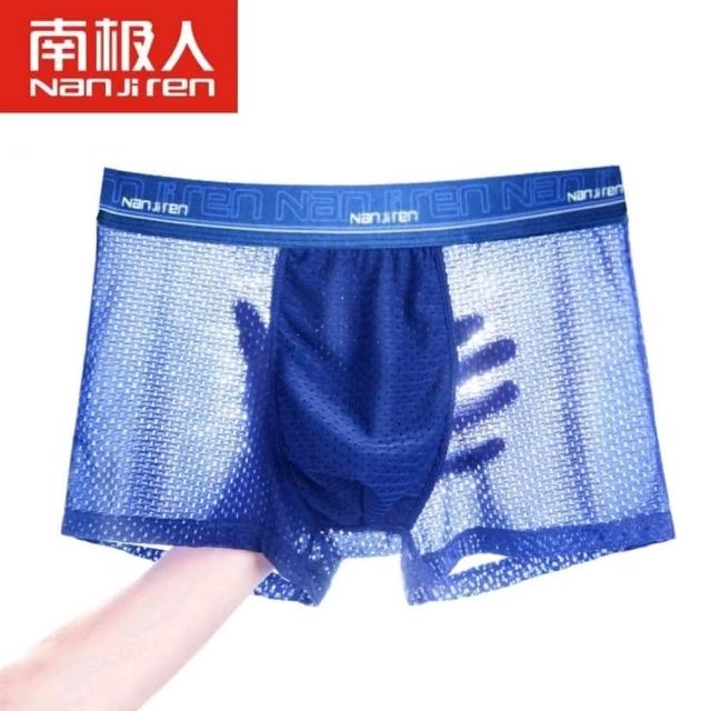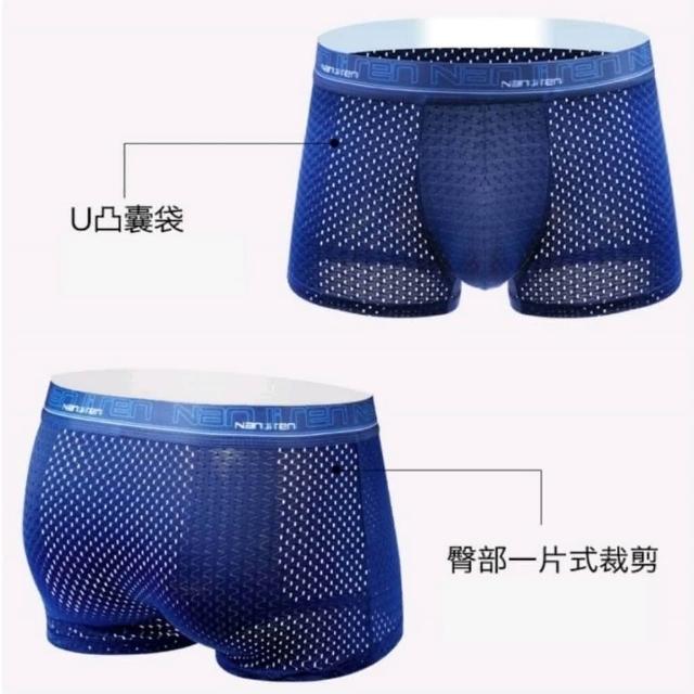 [RYANZ] 南極人 時尚冰絲全網眼 男生四角褲 彈性透氣涼感內褲 (灰銀藍黑 四件盒裝)