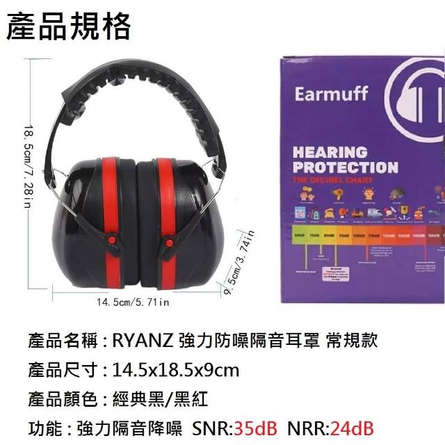 [RYANZ] 工業級強力降噪音防噪防護隔音耳罩 (常規款 降噪值NRR:24分貝)