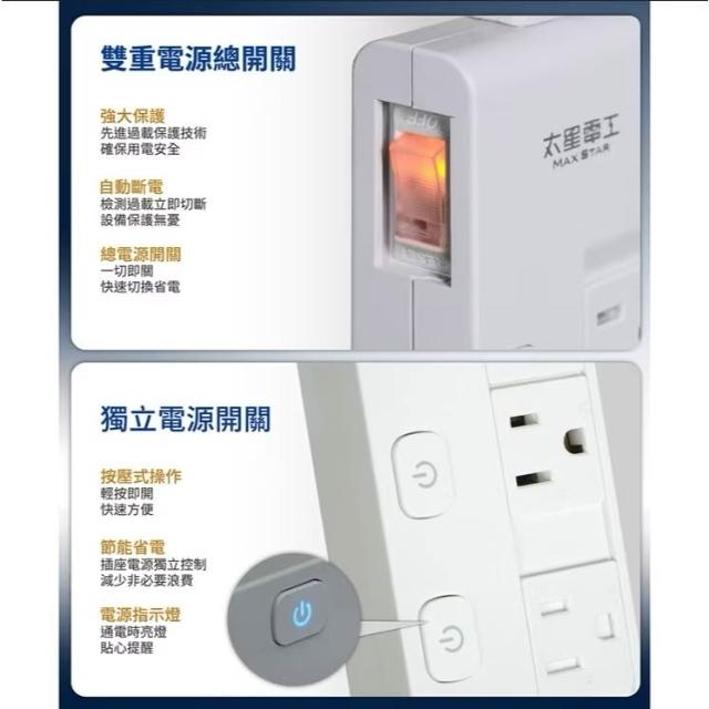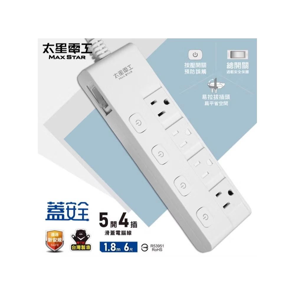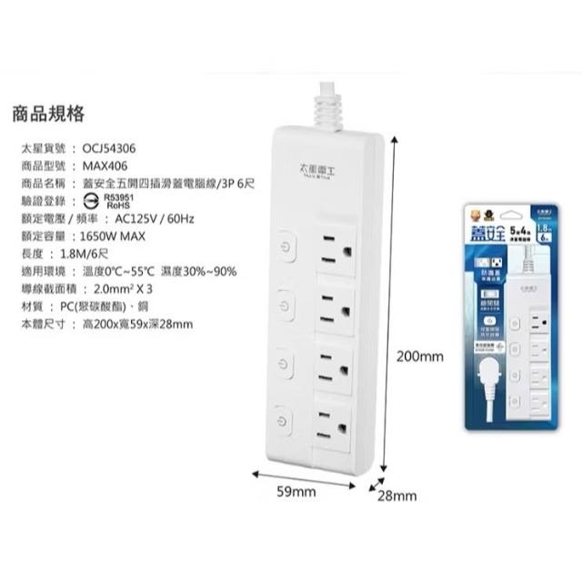 太星電工 蓋安全五開四插滑蓋電腦線/3P 6尺 9尺 OCJ54306 OCJ54309