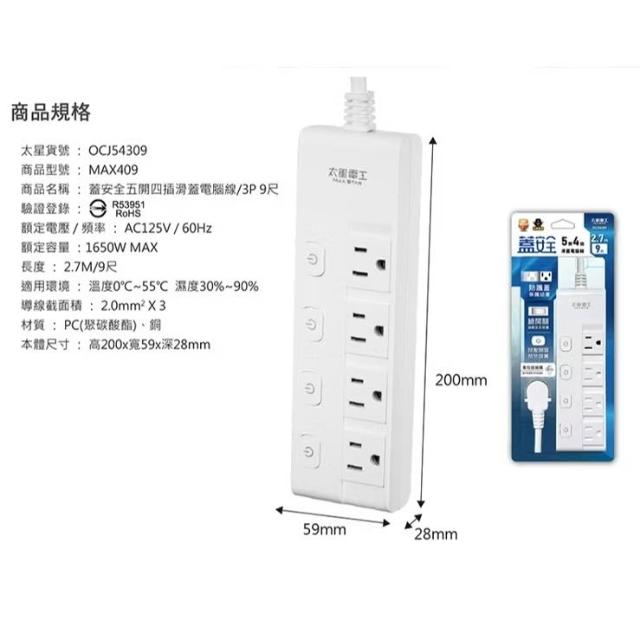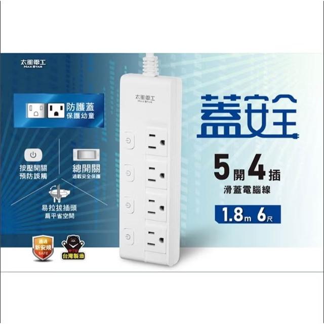 太星電工 蓋安全五開四插滑蓋電腦線/3P 6尺 9尺 OCJ54306 OCJ54309