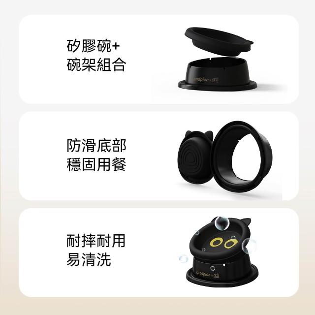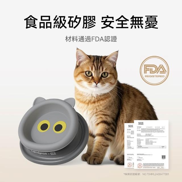 Maogougo 貓狗購【愛貓聯盟】Landpion 大眼喵喵碗增高碗 寵物餐碗 食品級矽膠 SGS檢驗 可微波 增高傾斜設計不易打翻 貓狗適用