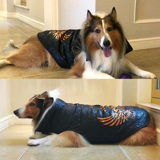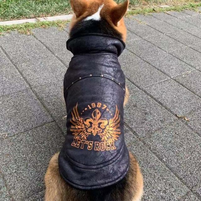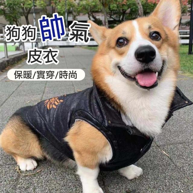 福媽寵物大狗皮衣 狗狗皮衣 寵物皮衣 寵物皮外套 鋪棉保暖衣服 仿舊皮革 鉚釘 卯釘 柯基 邊境 米克斯 中型犬