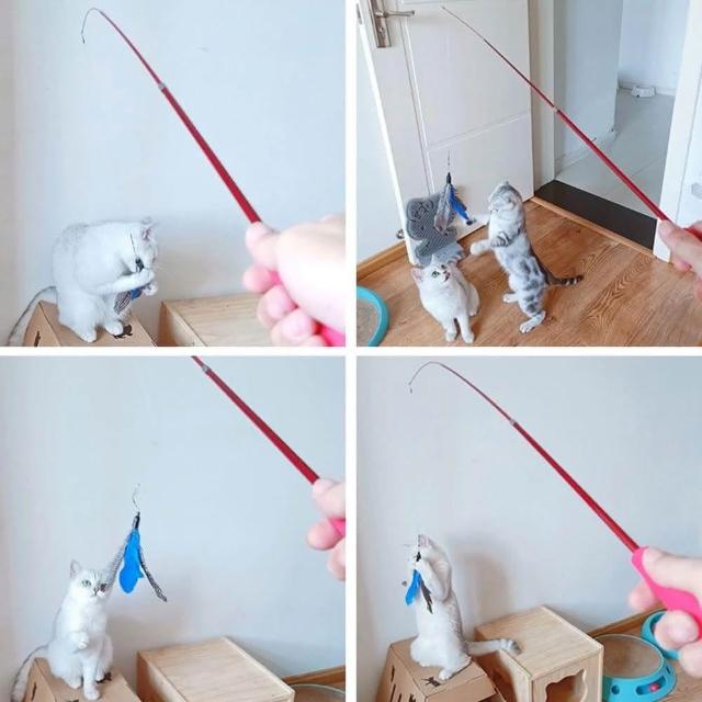 福媽寵物逗貓棒 伸縮 逗貓棒 釣魚逗貓棒 三節伸縮 貓玩具 魚竿 魚杆 釣竿 羽毛 釣魚線