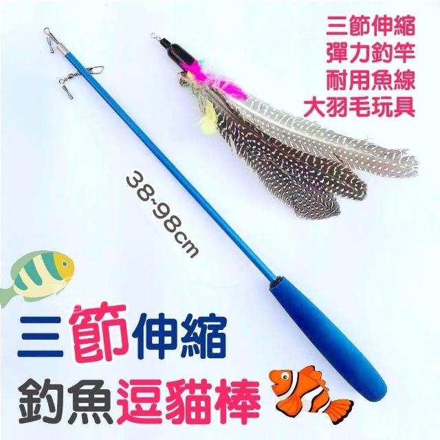 福媽寵物逗貓棒 伸縮 逗貓棒 釣魚逗貓棒 三節伸縮 貓玩具 魚竿 魚杆 釣竿 羽毛 釣魚線