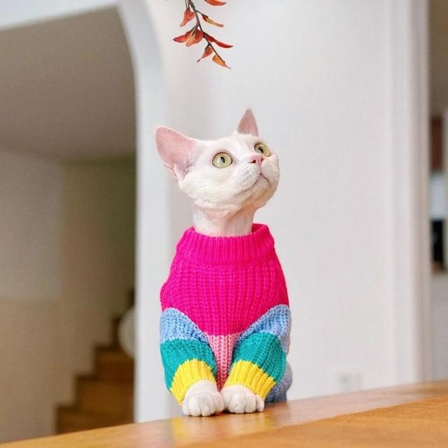 福媽寵物貓衣服 貓咪衣服 小貓衣服 貓背心 針織 高領 毛衣 保暖衣服 寵物衣服 無毛貓