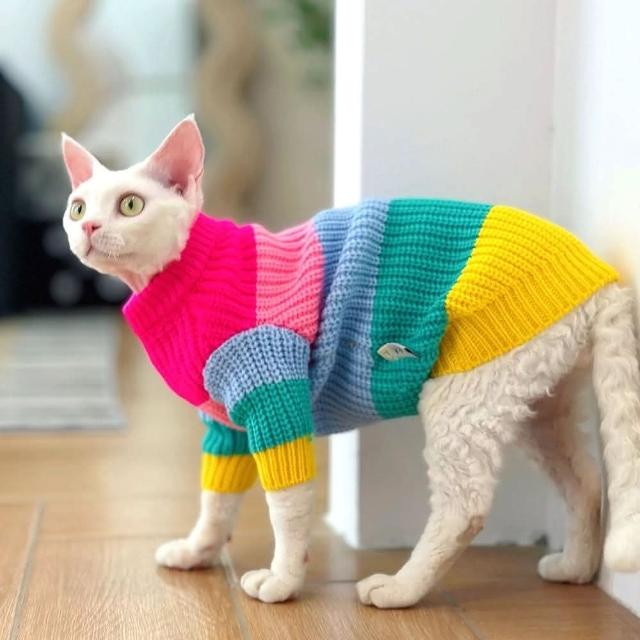 福媽寵物貓衣服 貓咪衣服 小貓衣服 貓背心 針織 高領 毛衣 保暖衣服 寵物衣服 無毛貓