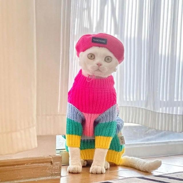 福媽寵物貓衣服 貓咪衣服 小貓衣服 貓背心 針織 高領 毛衣 保暖衣服 寵物衣服 無毛貓
