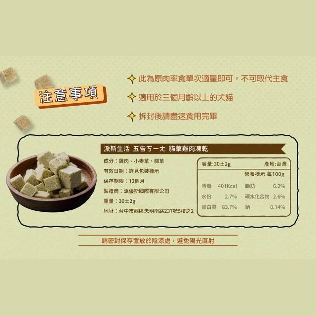 福媽寵物Petcook 派庫廚房 寵物凍乾零食 五告ㄎㄧㄤ 貓草雞肉凍乾 貓零食 貓凍乾 羊奶雞肉凍乾 優格雞肉凍乾